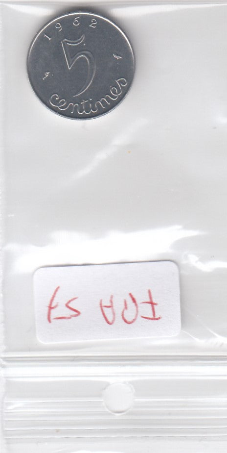 S10-FRA-0057 FRANKRIJK 5 centimes 1962 KM 927 UNC 0 €