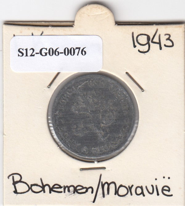 S12-G06-0076 Bohemia Moravia 1 koruna 1943 VF KM4