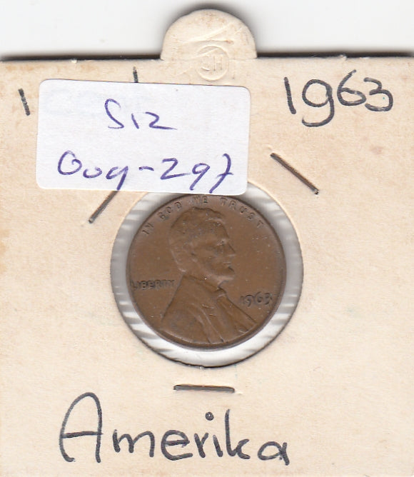 S12-G09-0297 Verenigde Staten 1 cent 1963 KM# 201 VF Lincoln Cent