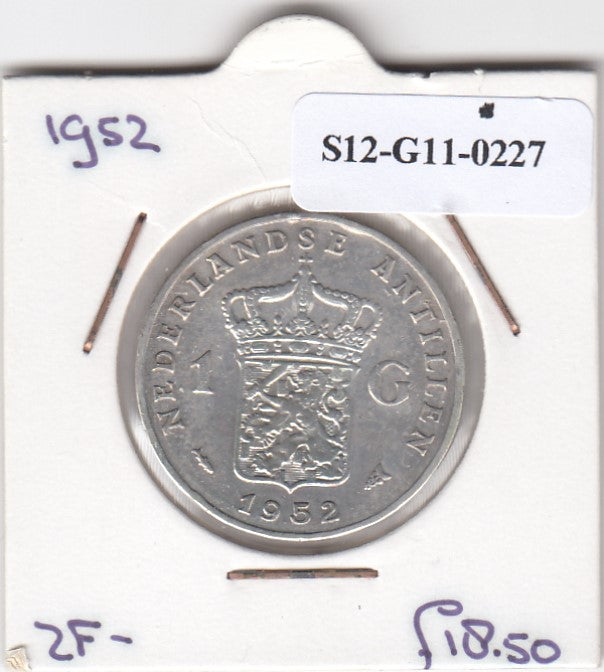 S12-G11-0227 Antillen 1 gulden 1952 VF KM2 zilver