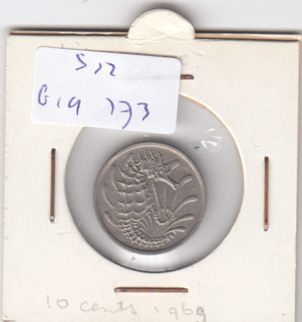 S12-G19-0173 Singapore 10 cents 1969 VF KM3