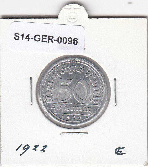 S14-GER-0096 Duitsland 50 Pfennig XF 1922 KM27 E