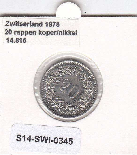 S14-SWI-0345 Switzerland 20 rappen 1978 XF/UNC KM# 29a