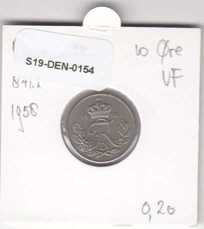S19-DEN-0154 Denmark 10 ore 1958 KM# 841 VF