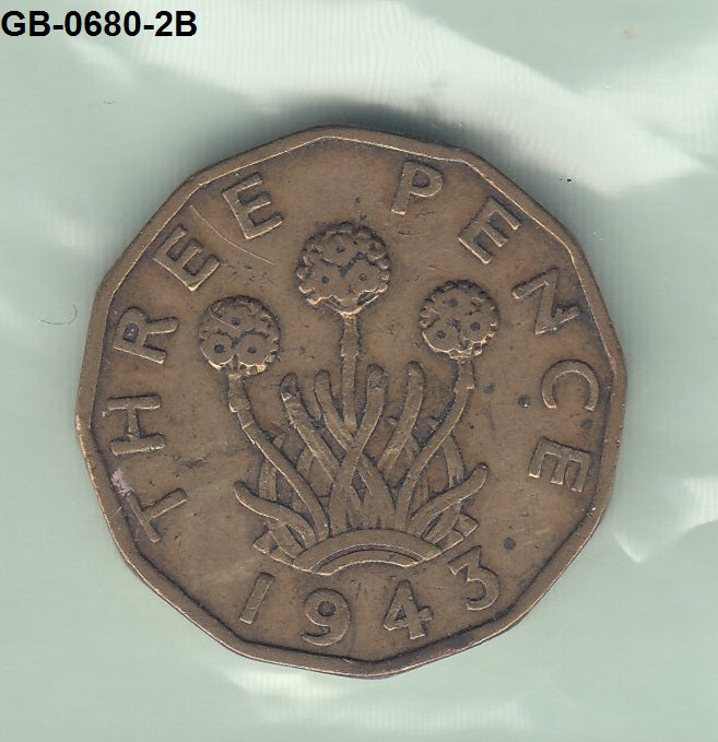 S3-GBR-0680-02 Verenigd Koninkrijk 3 pence 1943 VF KM 849