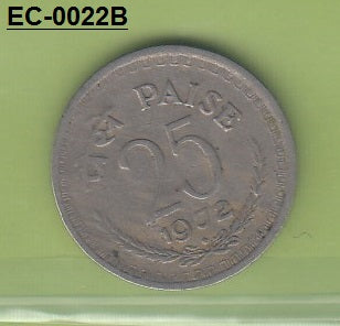 S6-HEC-0022 INDIA 25 PAISA 1972 VF KM49 BOMBAY