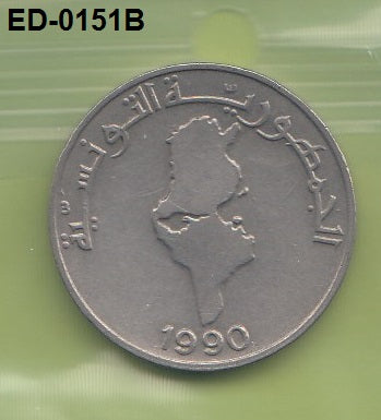S6-HED-0151 TUNISIA 1/2 DINAR 1990 VF